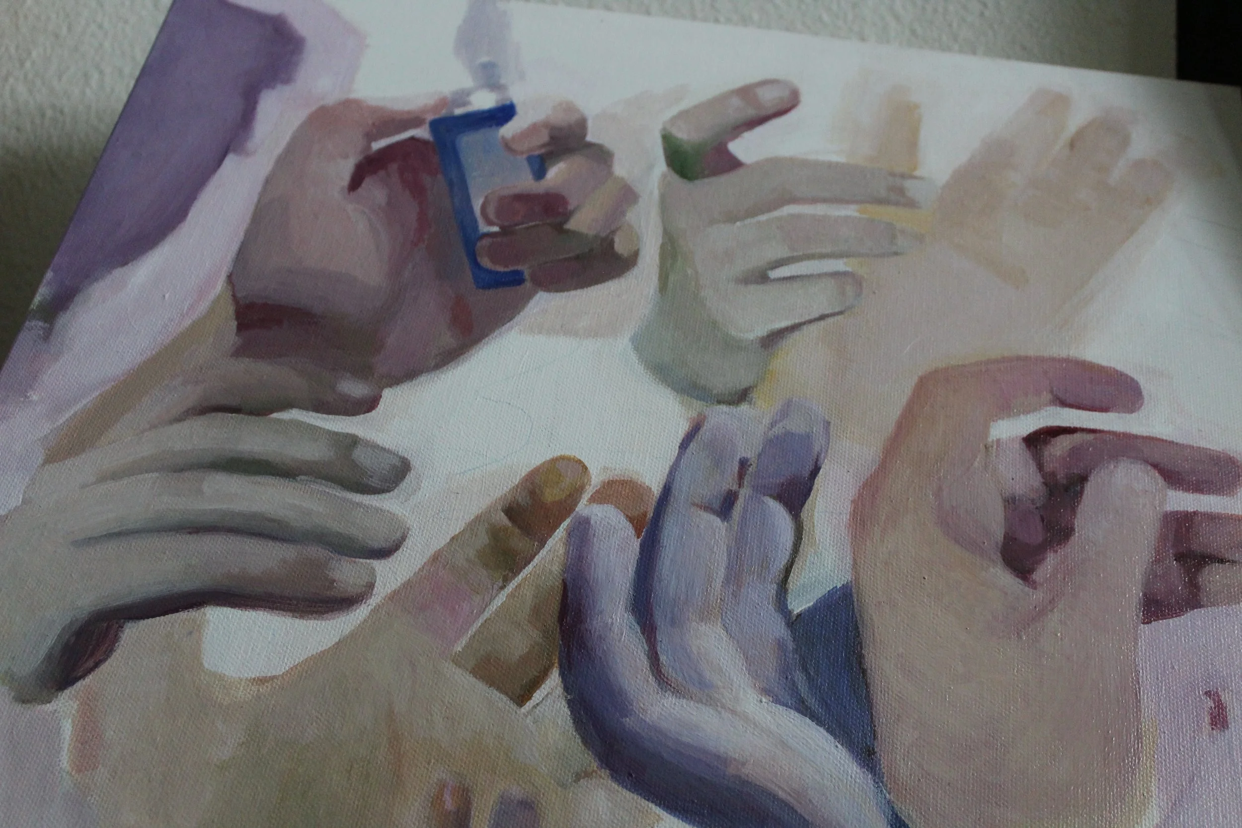 “A multimedia artist at heart, I tend to gravitate toward acrylic paint, ink, and nail polish. I am working on incorporating my emotions, relationships, and personal experiences into my work. I hope to process and reflect deeply enough during my process that my paintings feel personal in some way to the viewer.